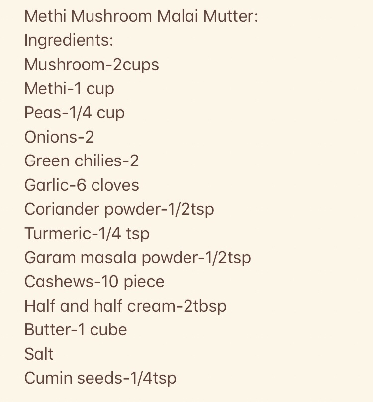 Cauliflower rice & Methi Mushroom Malai Mutter