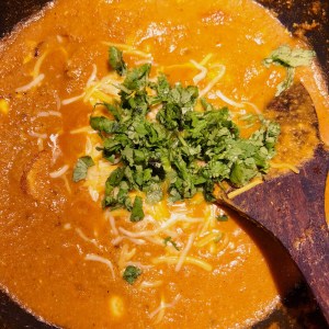 After 3 minutes add the grated cheese and coriander leaves.