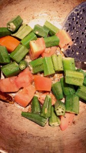 Then in the same pan add oil and then add mustard,fenugreek curry leaves and then add the vegies and add tamarind juice.