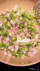 Then add onion and capsicum to it.