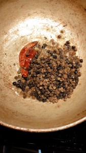 In a pan add oil then add mustard,fenugreek and thuvar dal.. and then add manathakali vathal and fry well. Add curry leaves. It’s an option.
