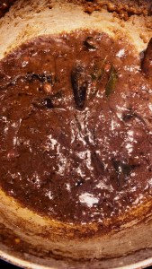 Then add the grounded urud dal and dhaniya powder to it. And let it boil for 10mins on high.