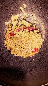 In a pan add oil and add the fry and grind items and then add in blender along with coconut and then make it as a paste.