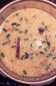 Pressure cook with two whistles and switch off the flame and wait for the pressure to release.