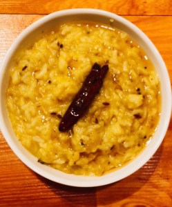 Then remove the rice from cooker and mash it by adding salt ,asafetida and water to it and then add the fried onions to it and add ghee to the rice.