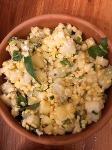 Chopped raw mango,cucumber,add soaked moong dal (soak for 20mins), chopped green chili,coriander leaves,curry leaves and a hint of lemon juice and salt. Toss everything together and serve.