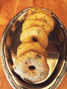 Strain the water from urud dal and grind it smoothly by adding salt and a teaspoon of water and if needed one more. And don’t be liberal in adding water as we will not be able to make the vada shape.