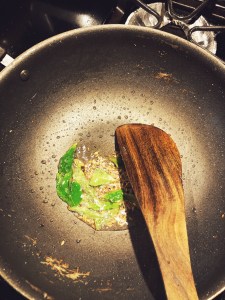 Then in the pan add little more oil and add cumin and curry leaves. And to it add the chopped onions and salt.