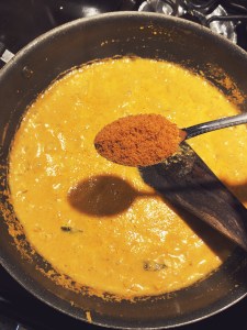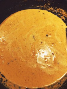 Then add the purée to it and add the tamarind water and half a cup of plain water.