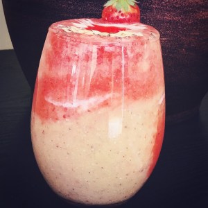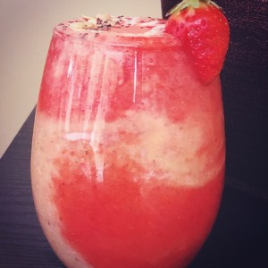 Now later them by adding strawberry purée and then the cantaloupe.. then some yoghurt and then the balance strawberry purée and then garnish with melon seeds and chia..