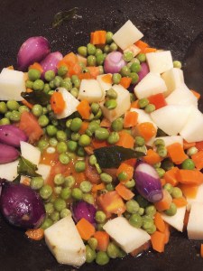 After two minutes add the vegetables. And then add tamarind water.