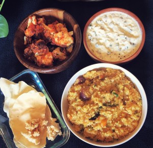 Hot spicy Sambar rice is ready to serve with potato fry or cauliflower fry or any veggie of your choice and with some crispy’s chips or applam.