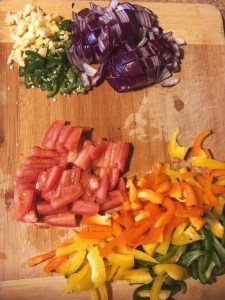 Slice onions,tomato,bell peppers..and carrot.