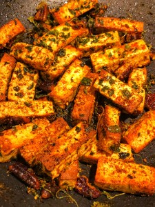 4. Toss them well by adding salt and red chili powder and mix in a tsp of kasuri methi leaves (dried fenugreek leaves)