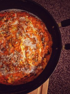 9. Toss in the potatoes and cook for two mins and then add the grated cheese and heavy cream.