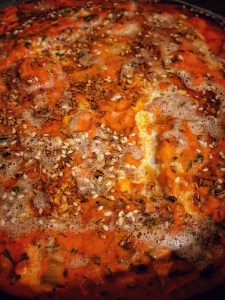 A rich gravy loaded with four cheese , heavy cream and veggies..