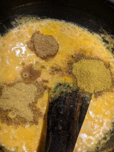 8. Now add the garlic powder and then after a min add kasuri methi (crush them and add)