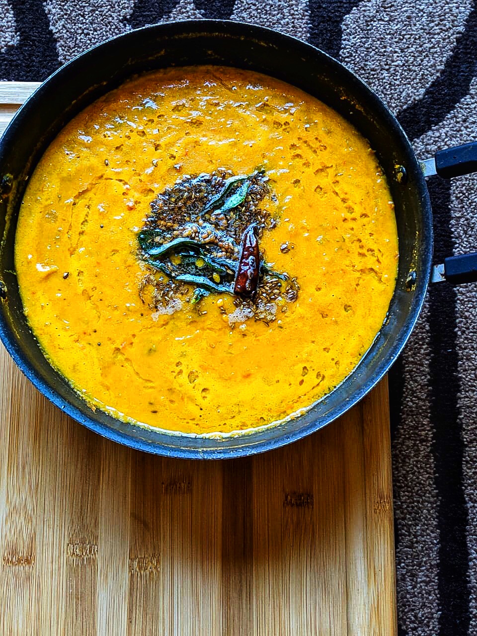 1.Pressure cook the dal by adding turmeric and four whistles. Allow the pressure to settle and mash well and keep aside.