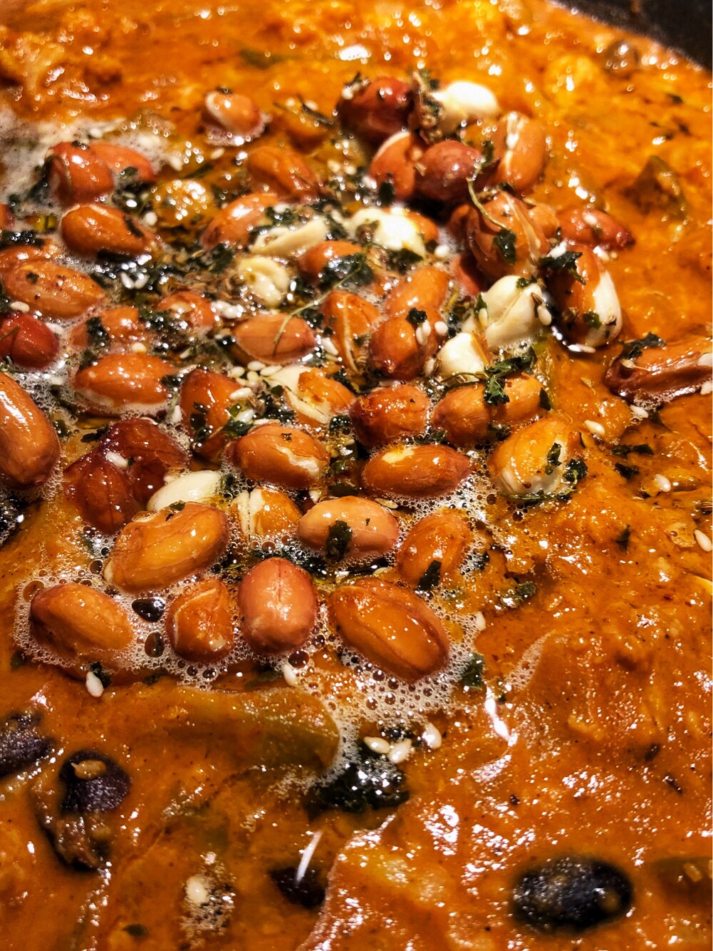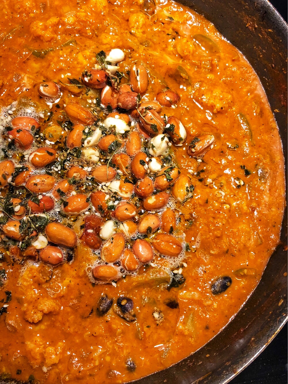 8. In a pan add 2 oz of butter (can be substituted with ghee) to it add 2 tsp of peanuts, 1 tsp of sesame seeds,1/2 tsp of carom seeds (ajwain/omam) and 1 tsp of crushed kasuri methi.