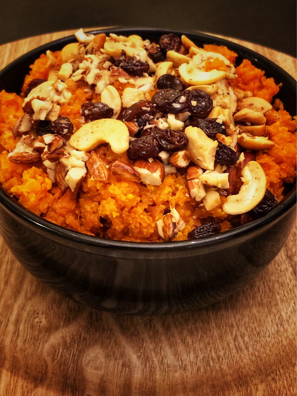 A famous recipe in India for most of the festive’s and occasions. It’s very tasty and irresistible. As its winter was craving to have this hot halwa (sweet) drizzled with nuts and raisins..