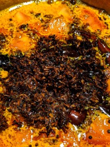 7. Once the foam is formed add the chopped coriander leaves and curry leaves..