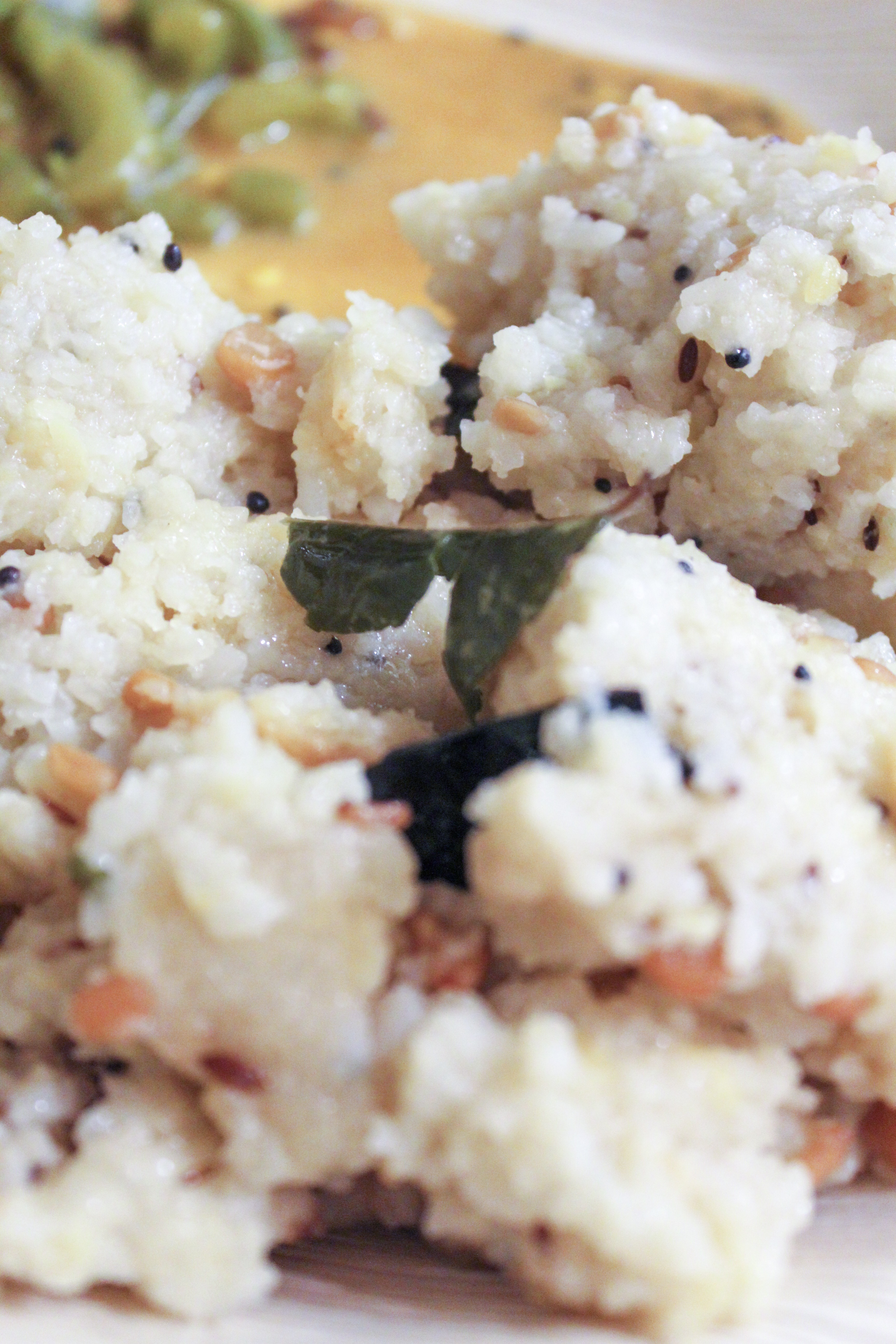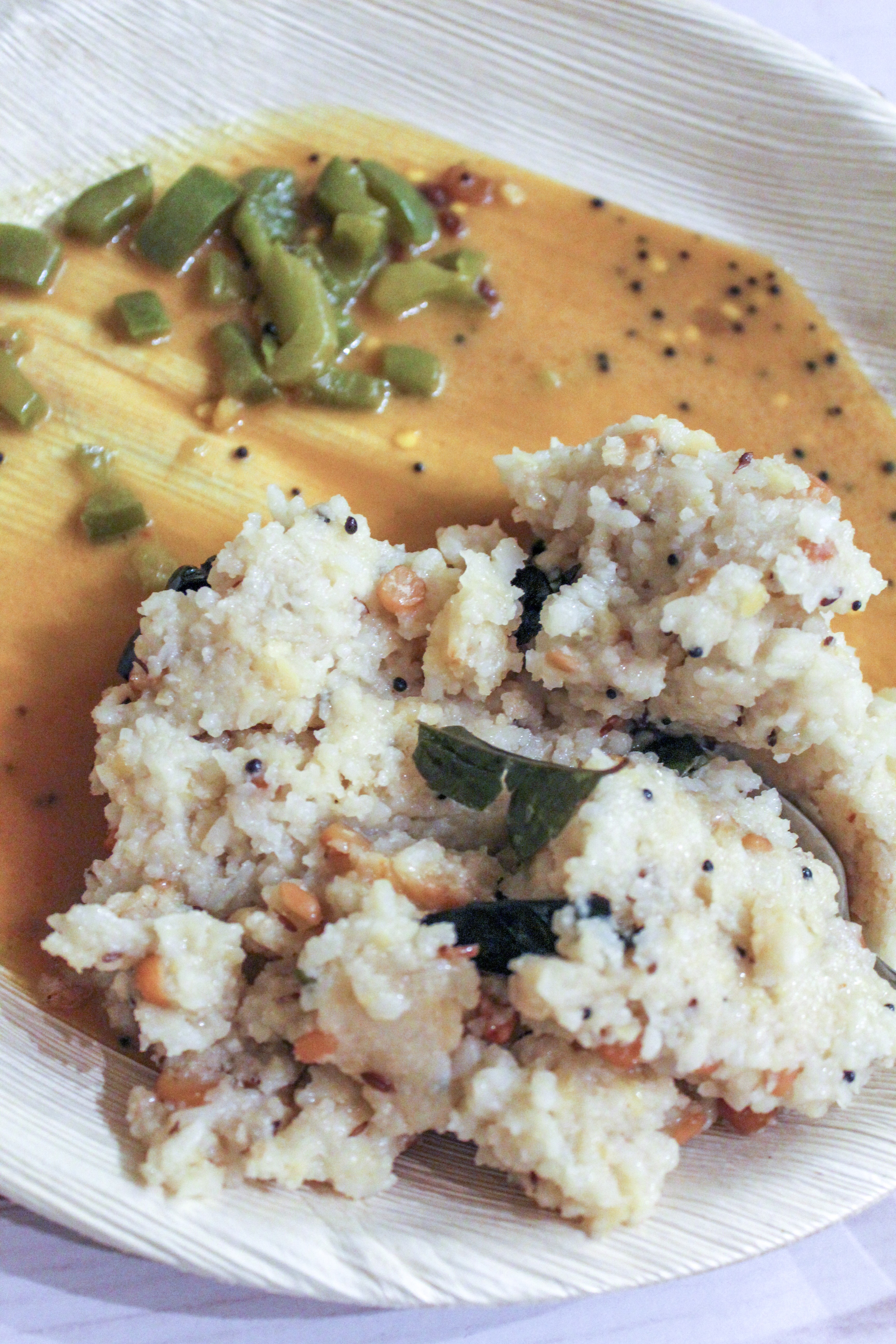 A famous and authentic South Indian recipe ARISI UPMA (made with broken rice and lentil) & CAPSICUM PULI GOTSU (green bell peppers in tamarind gravy) .
