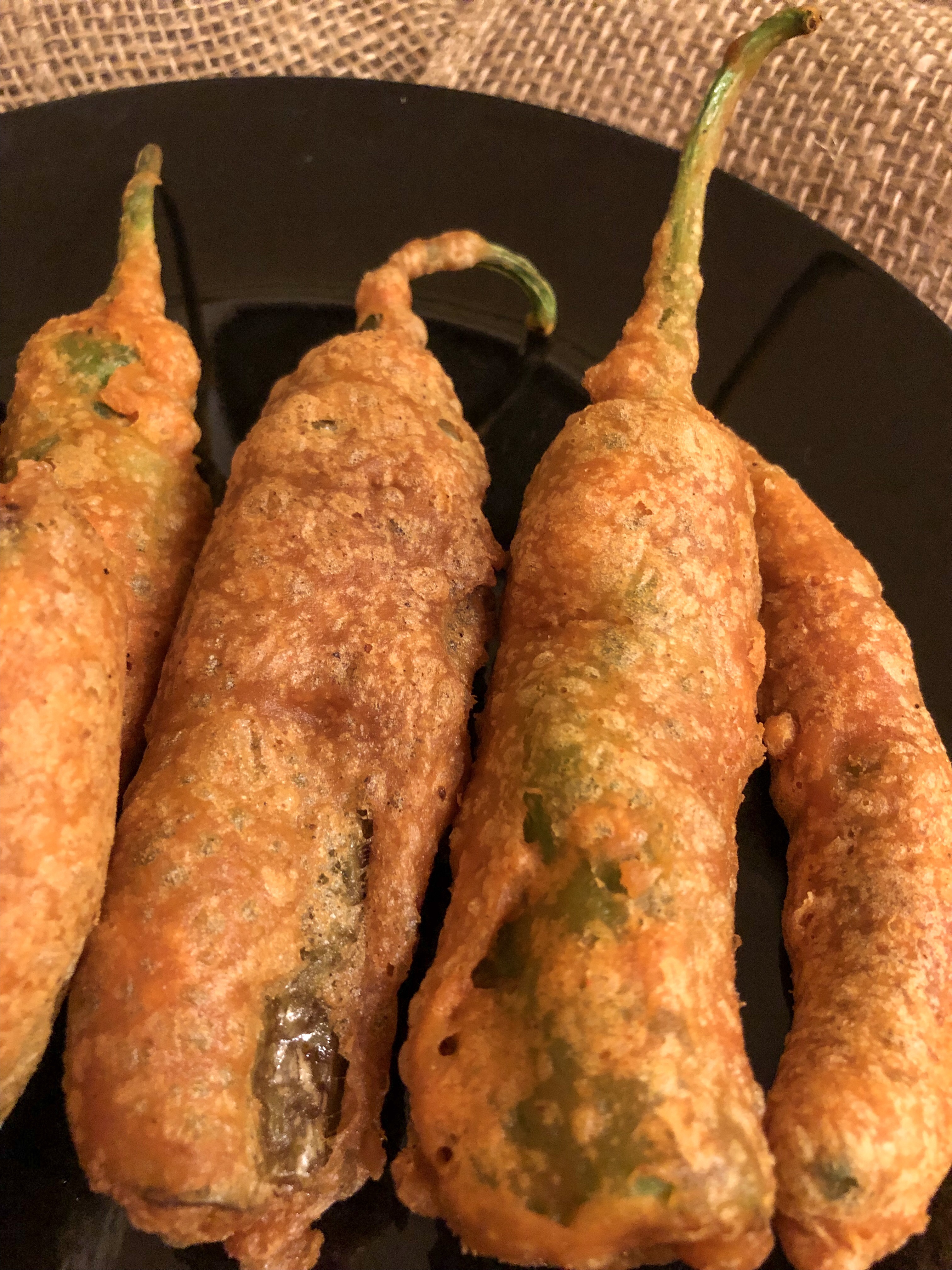 3. Dip the chilies in this batter (puree) and deep fry them.