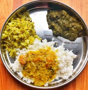 Palak Gobi ( fried cauliflower in spinach gravy)