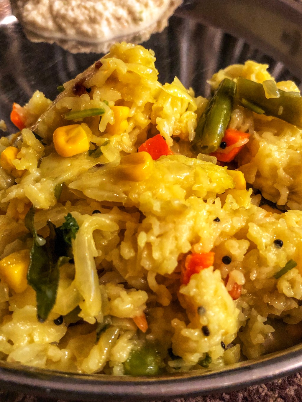 3. Sauté for two mins by adding salt and 1/2 tsp of turmeric powder. Then add the mixed veggies like beans, carrot, peas, corn etc.. and sauté for a minute more.