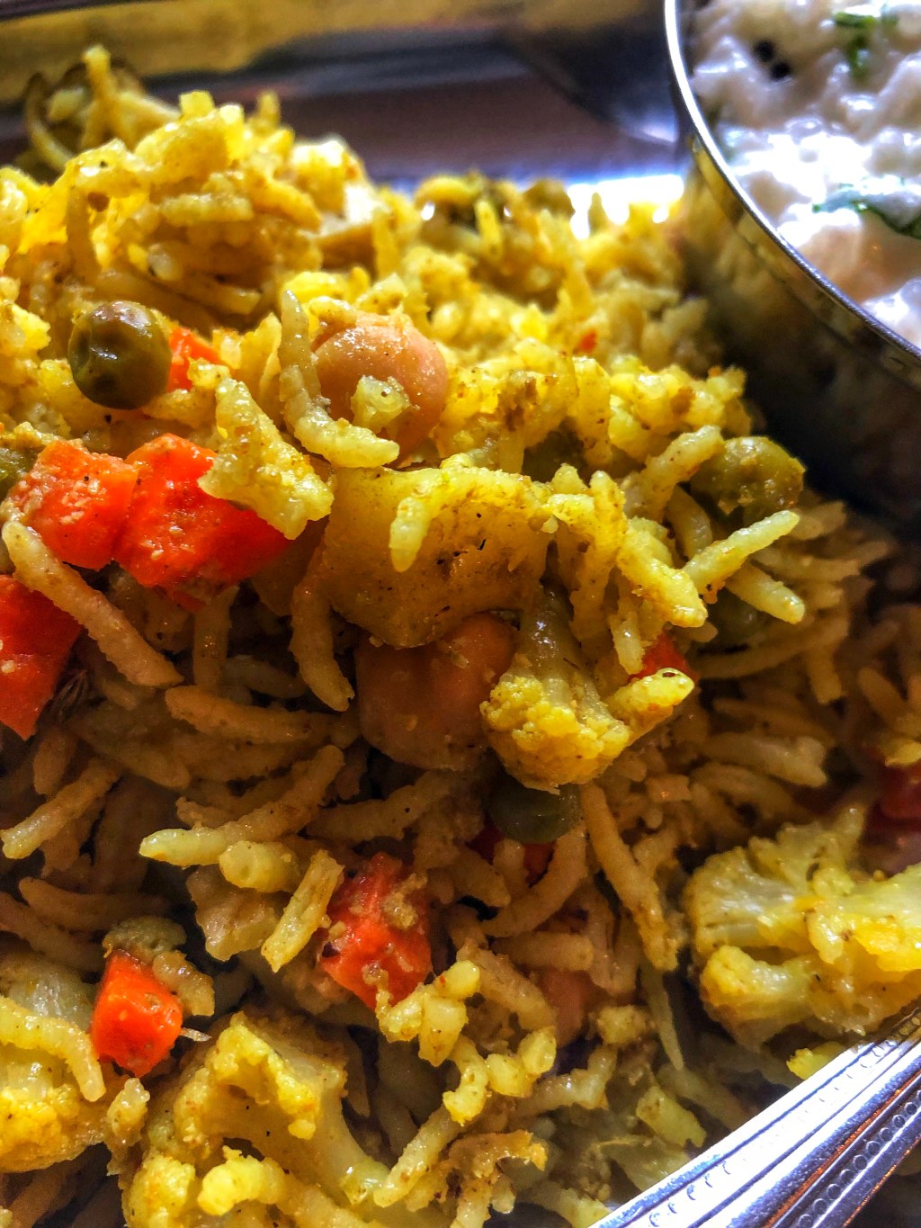 Chop veggies like carrots,cauliflower,potato,peas and beans and boil Chana (or use canned)