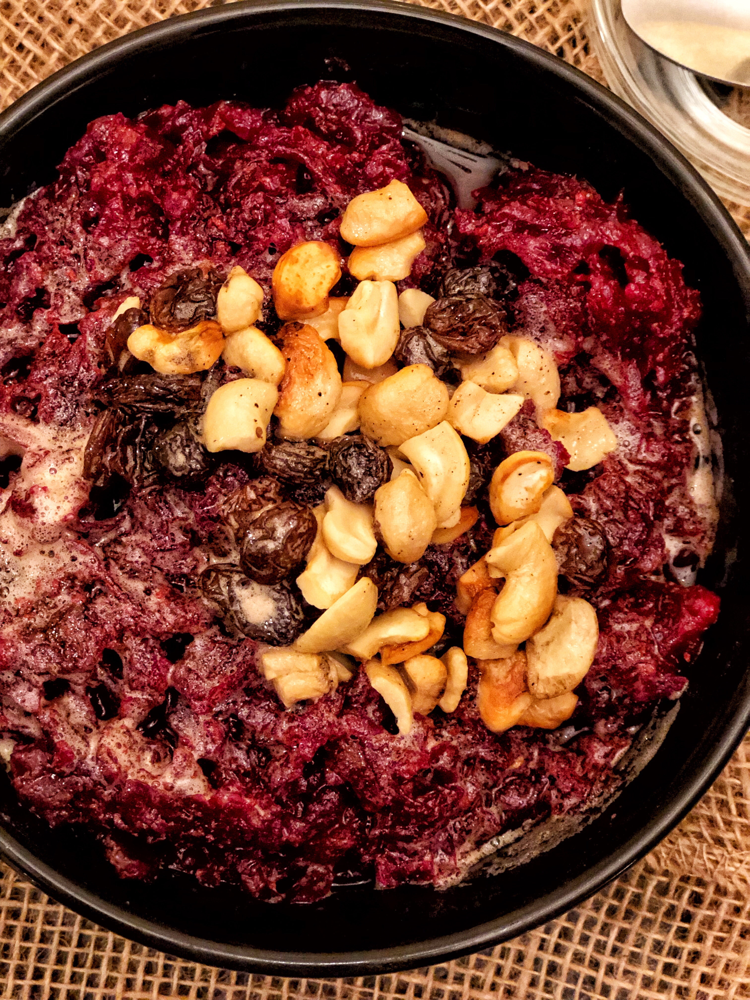 1. Pressure cook peeled and grated beetroots by adding 1/2 cup of whole milk and 1/2 cup of diluted heavy cream. With two whistles. Let it cool and then transfer them to a pan. .