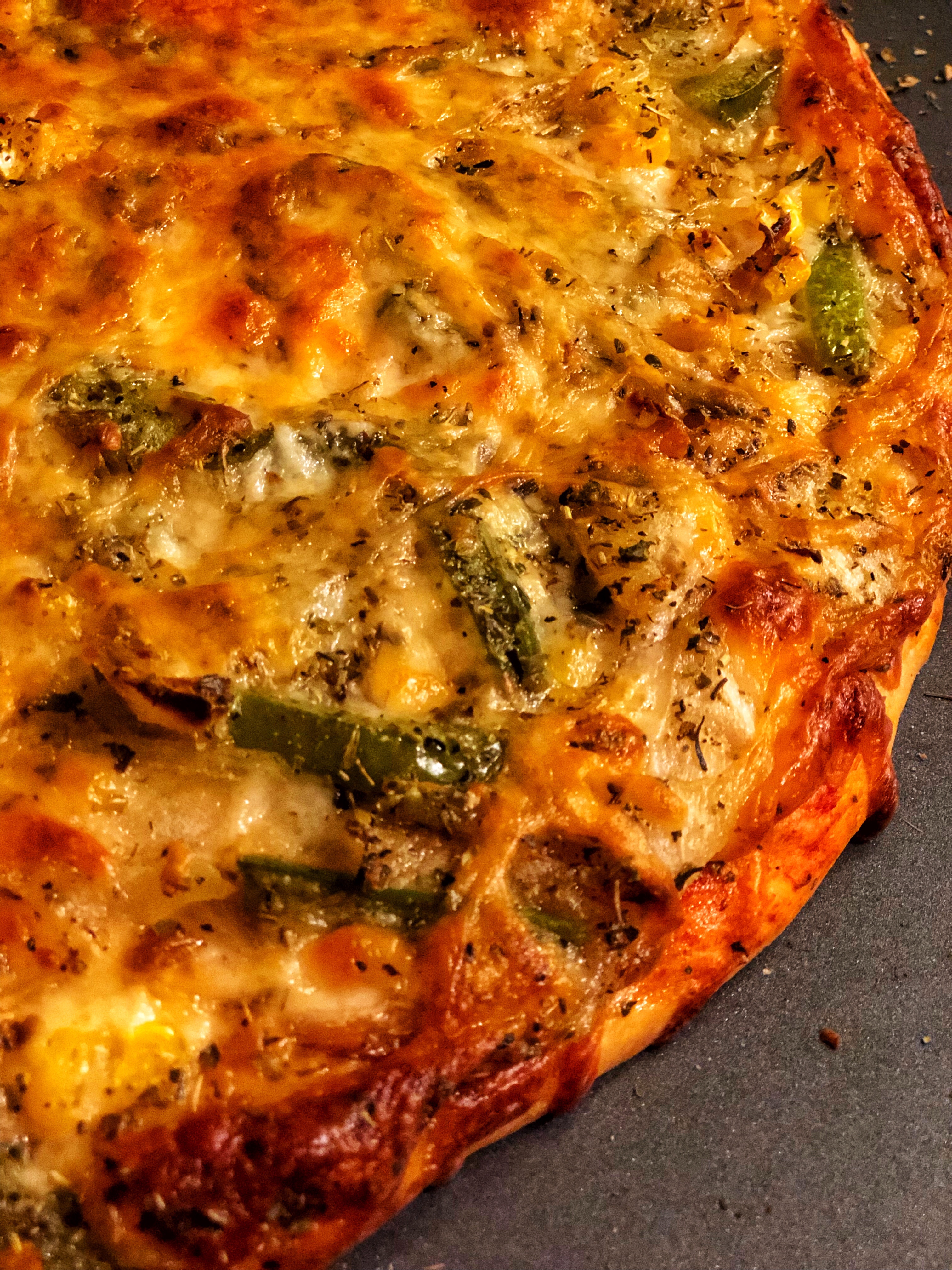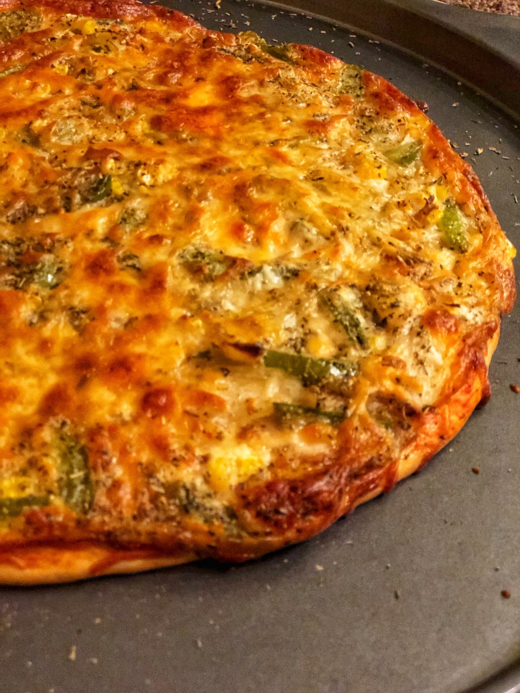 4. Baked for 30 mins and am all done with these yum and cheese pizza. For thin crust roll the dough thin and do your own variations.!