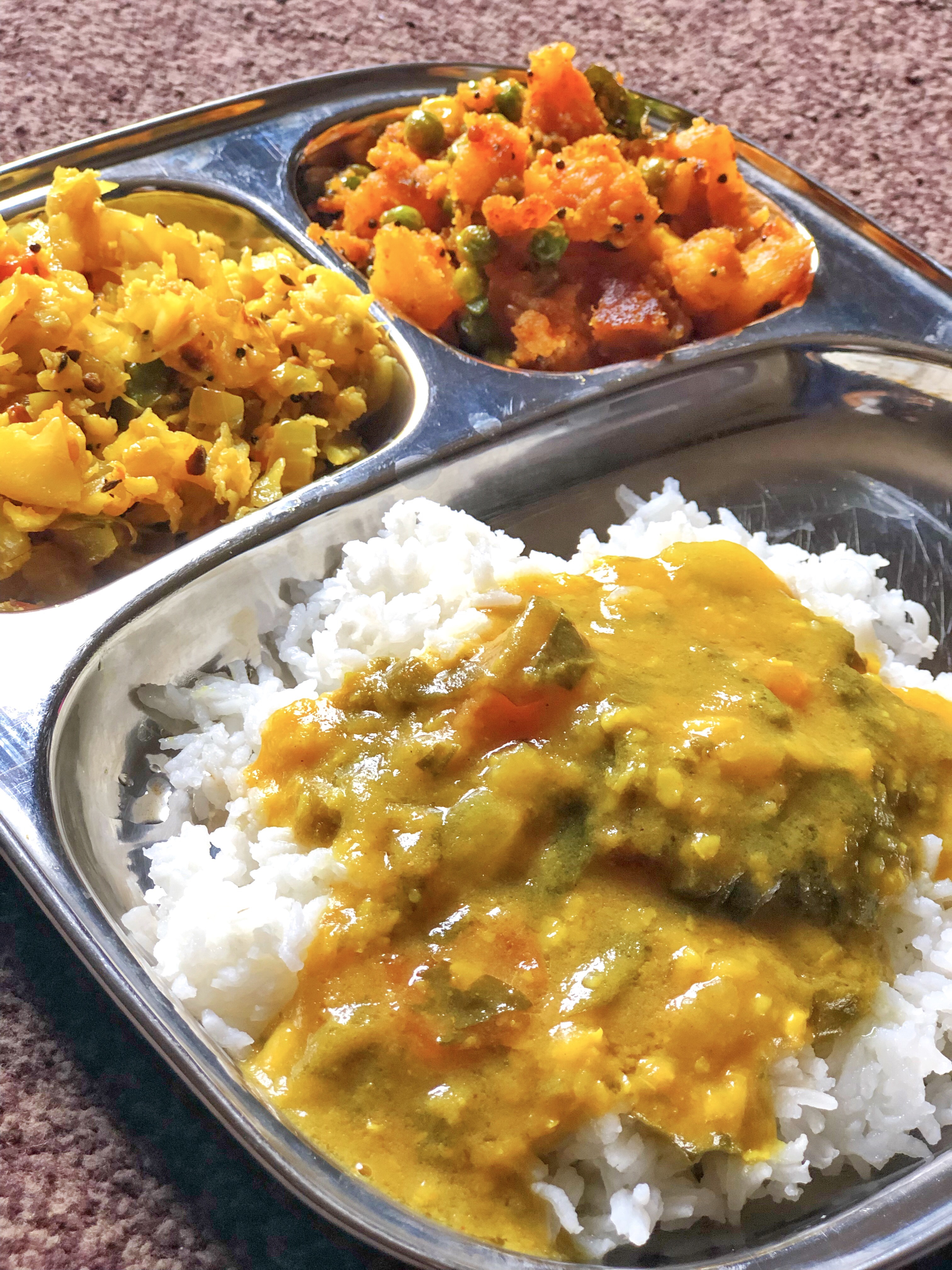 Keerai payathamparupu sambar (spinach moong dal gravy)