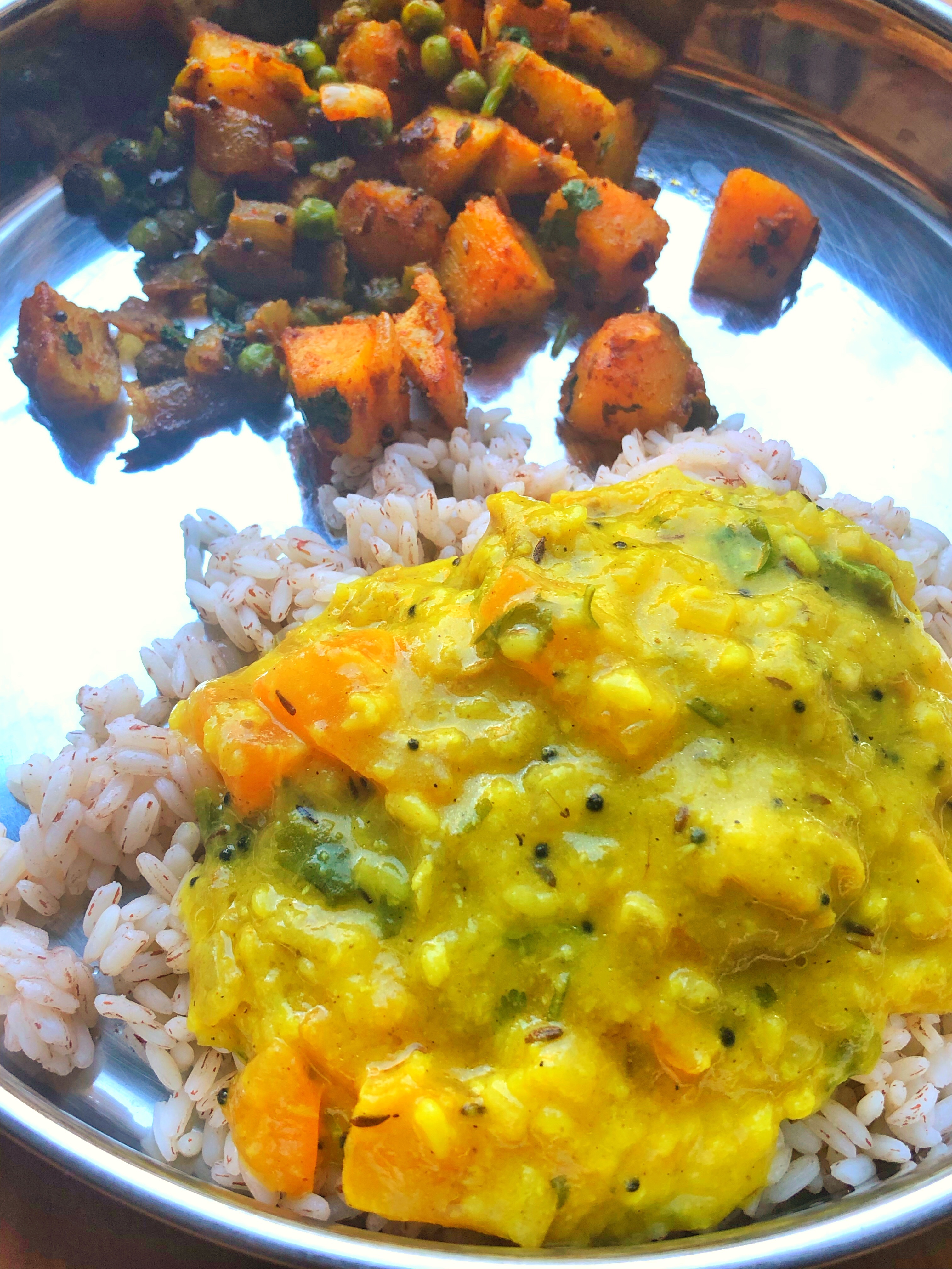 1. Pressure cook 3/4 cup of moong dal, mash and keep aside.