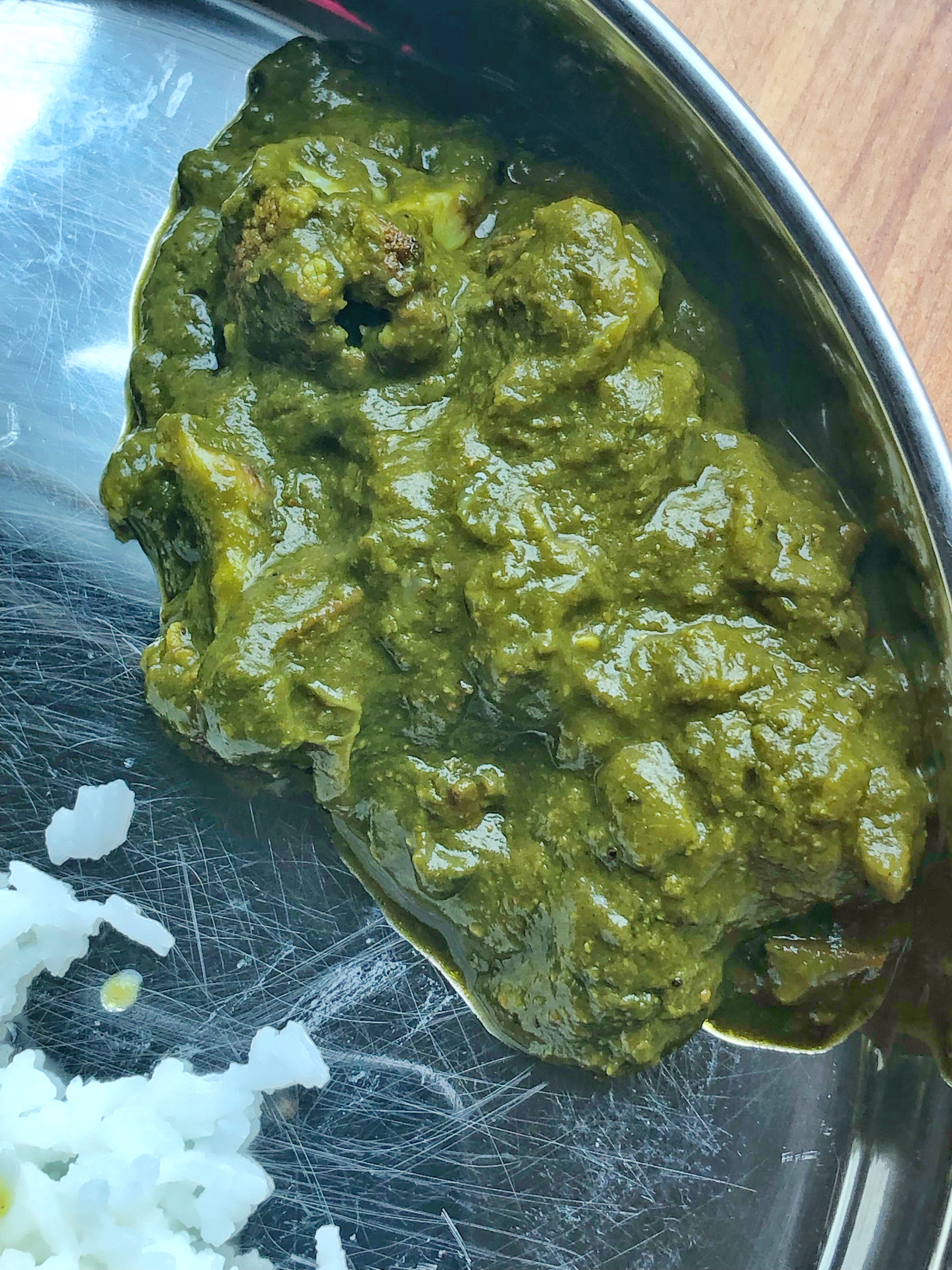 Palak Gobi ( fried cauliflower in spinach gravy)