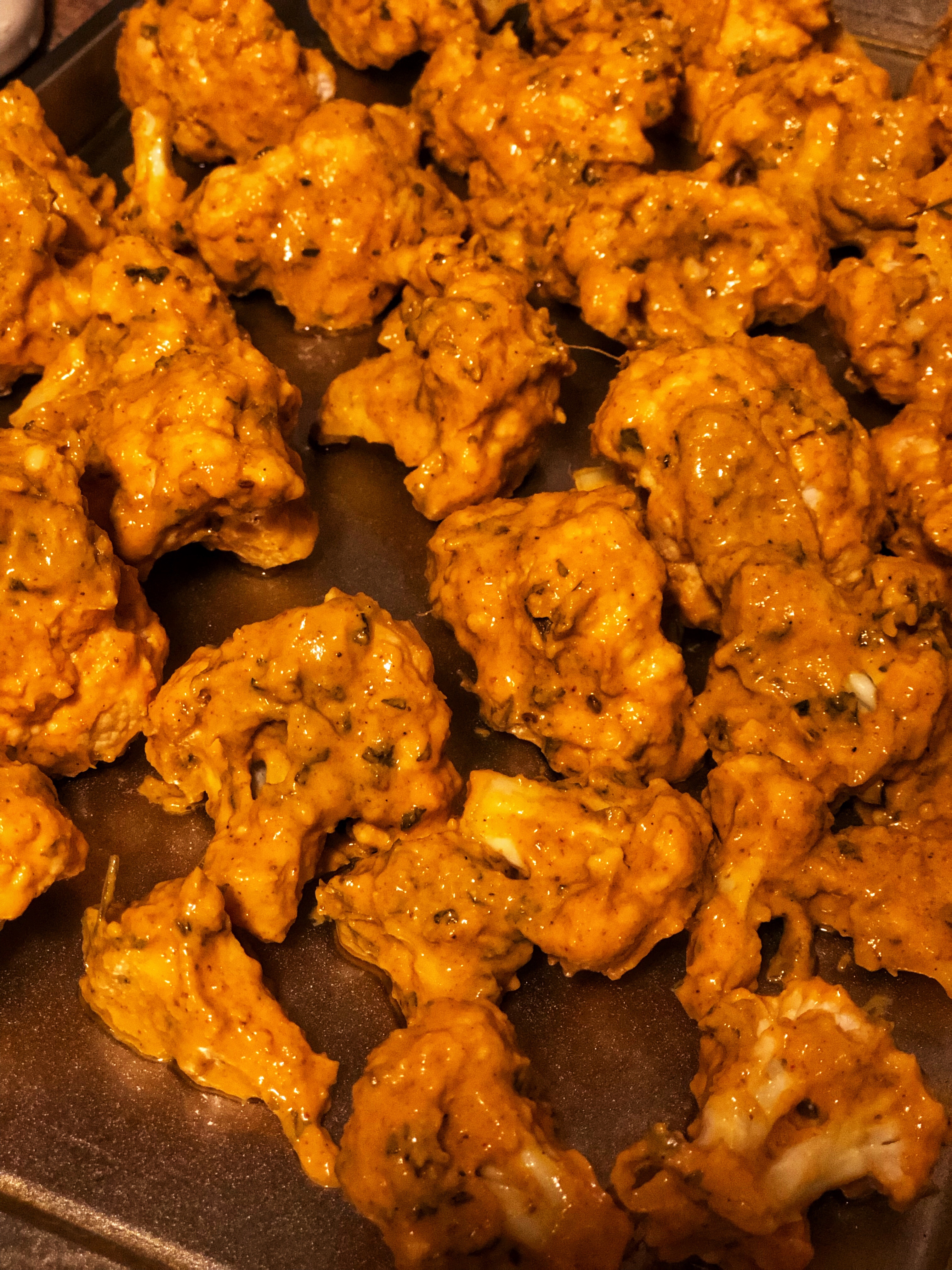3. Preheat oven at 375f and once marination done in a baking sheet or tray spray oil and add the marinated florets and bake for 10 mins.