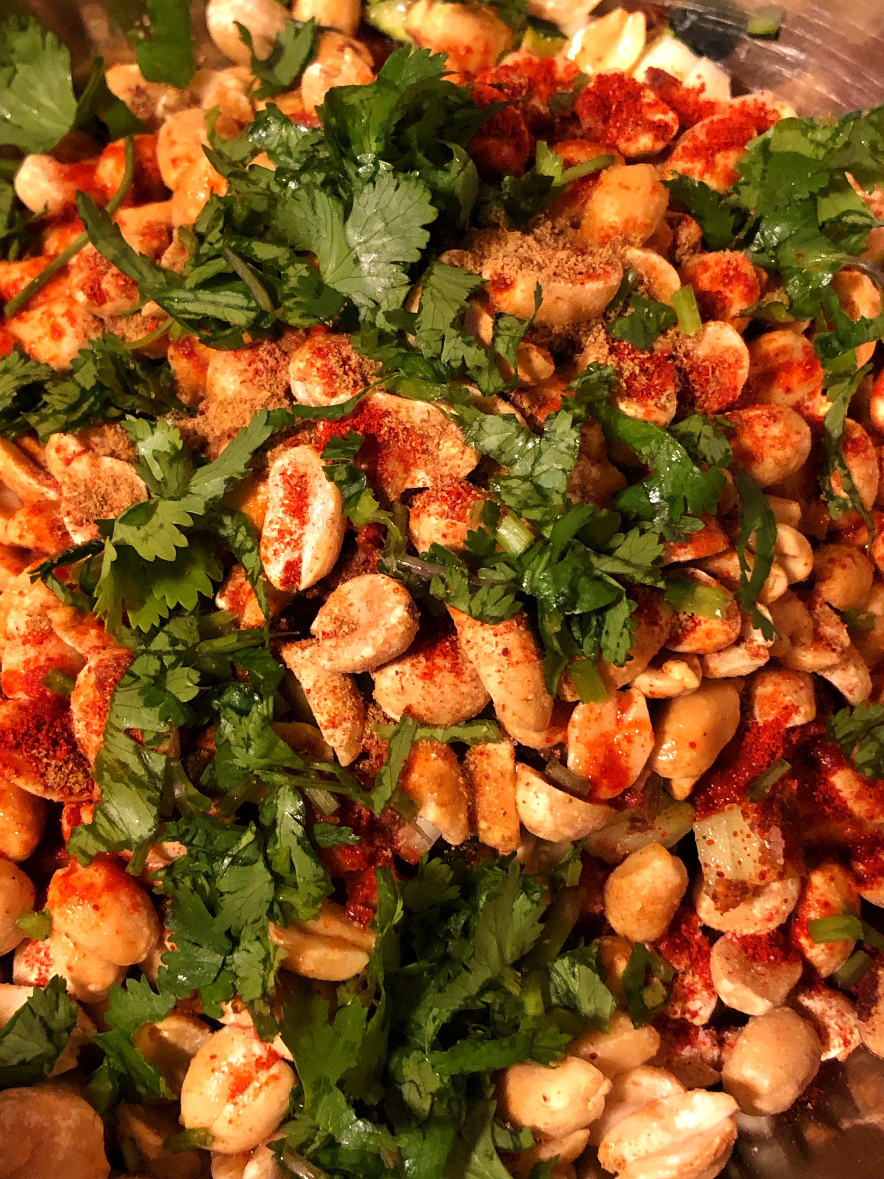 Toss in finely chopped onions,tomatoes,zucchini (you can use cucumber), peanuts and then drizzle with salt,red chili powder (or paprika) cumin powder and lemon juice.. garnish with some coriander leaves.. and serve and will be so tasty and yum.. add in some chat masala if you like it..