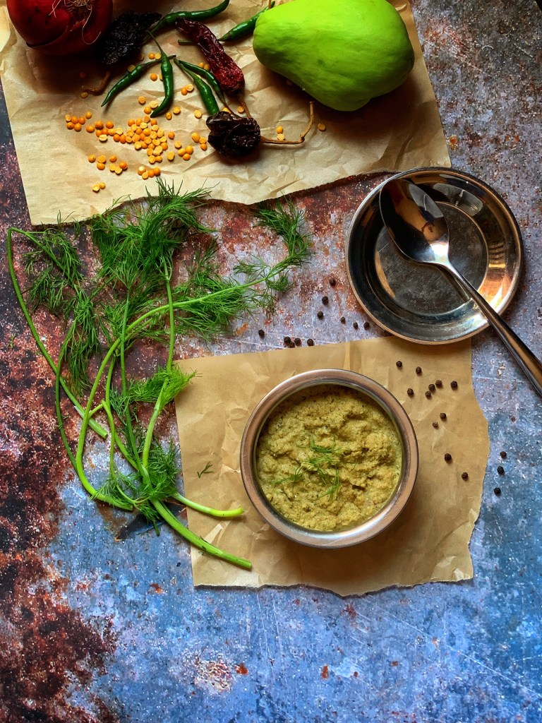 DILL LEAVES & CHAYOTE SKIN CHUTNEY: (Dill leaves & chow chow Thol thogayal)