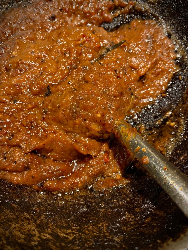 6. You can see the oil oozing on the sides. This is the right consistency. Then add the dry fried fenugreek powder as preservative at the end. It will maintain the shelf life, without for it get spoilt on a longer run.