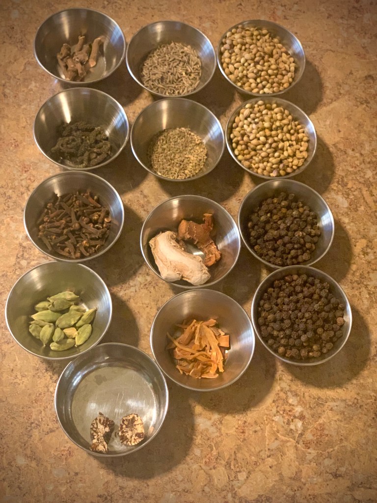 1. There are two ways people do this, one is by soaking all the items except nutmeg and cardamom and the second method is how i did, by dry sauteing each ingredients except the same two items- cardamom and nutmeg.