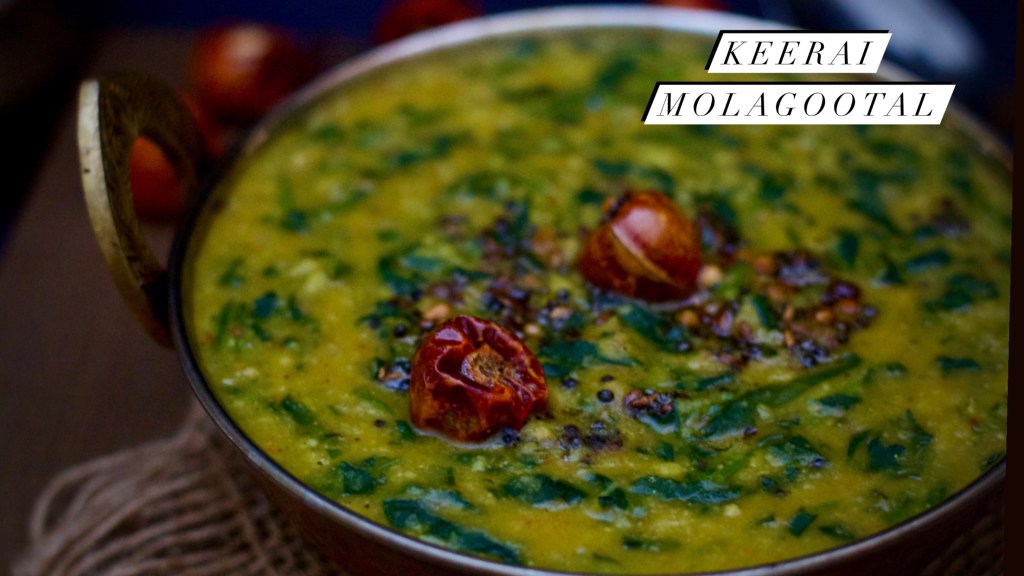 Molagootal is a very easy and a traditional recipe from the south side of tambrahm cooking. Especially from the side of Palakkad. Keerai Molagootal can be prepared using any kind of keerai varieties. In india we generally get “Thandu Keerai” which is called as “Amaranth”, And slender Amaranth, “Dwarf Copper leaf spinach”, “Tropical Amaranth”, Or by using Palak Variety too. In tamil it is called as “Pasalai keerai”.